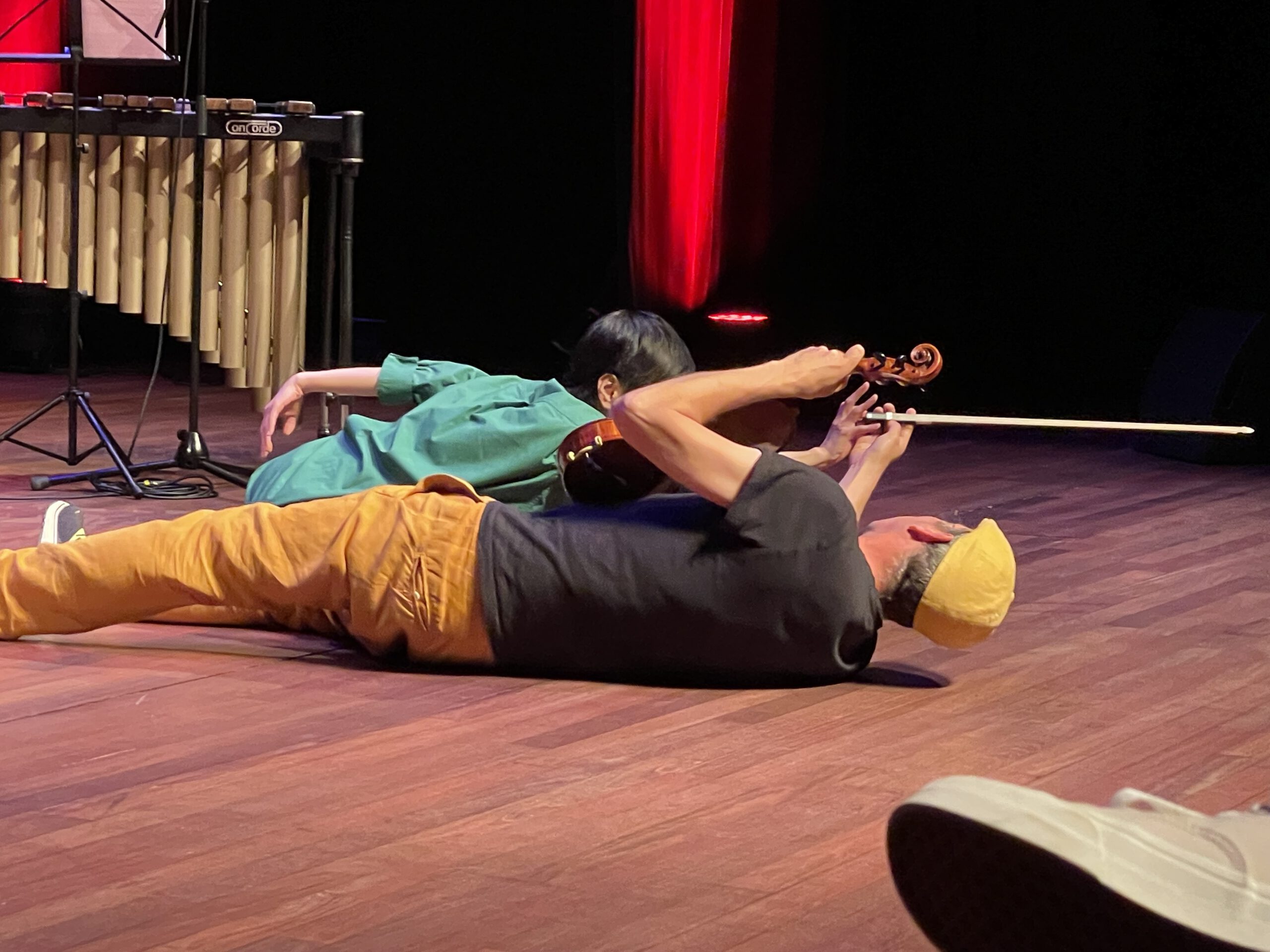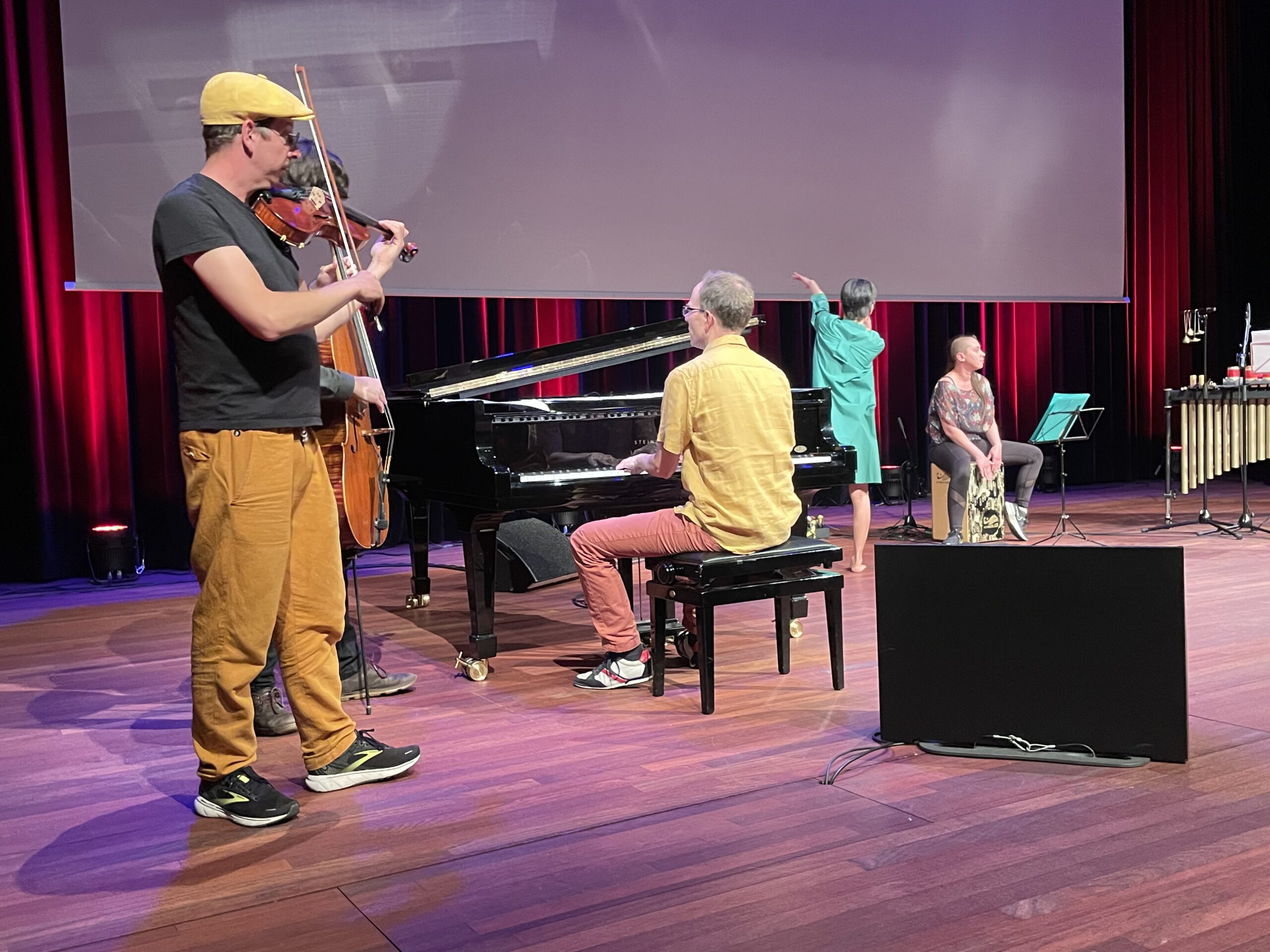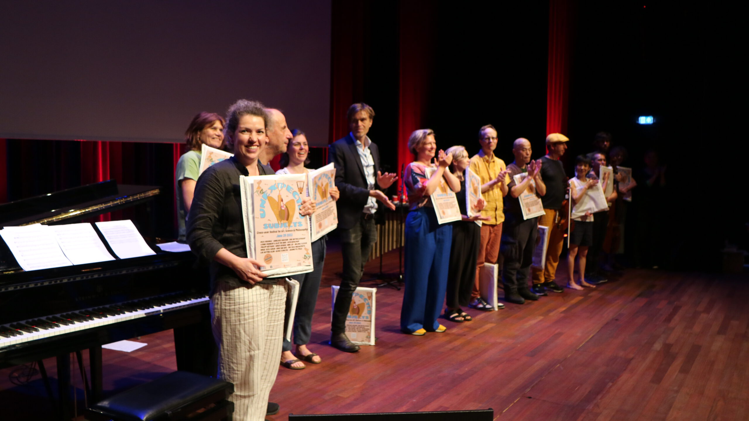 The idea of the unexpected was part of the performance of the artists. They are specialized in improvising music (piano, violin, cello, percussion) and dance. This underlined a playful taking of risks when the unexpected is invited in.