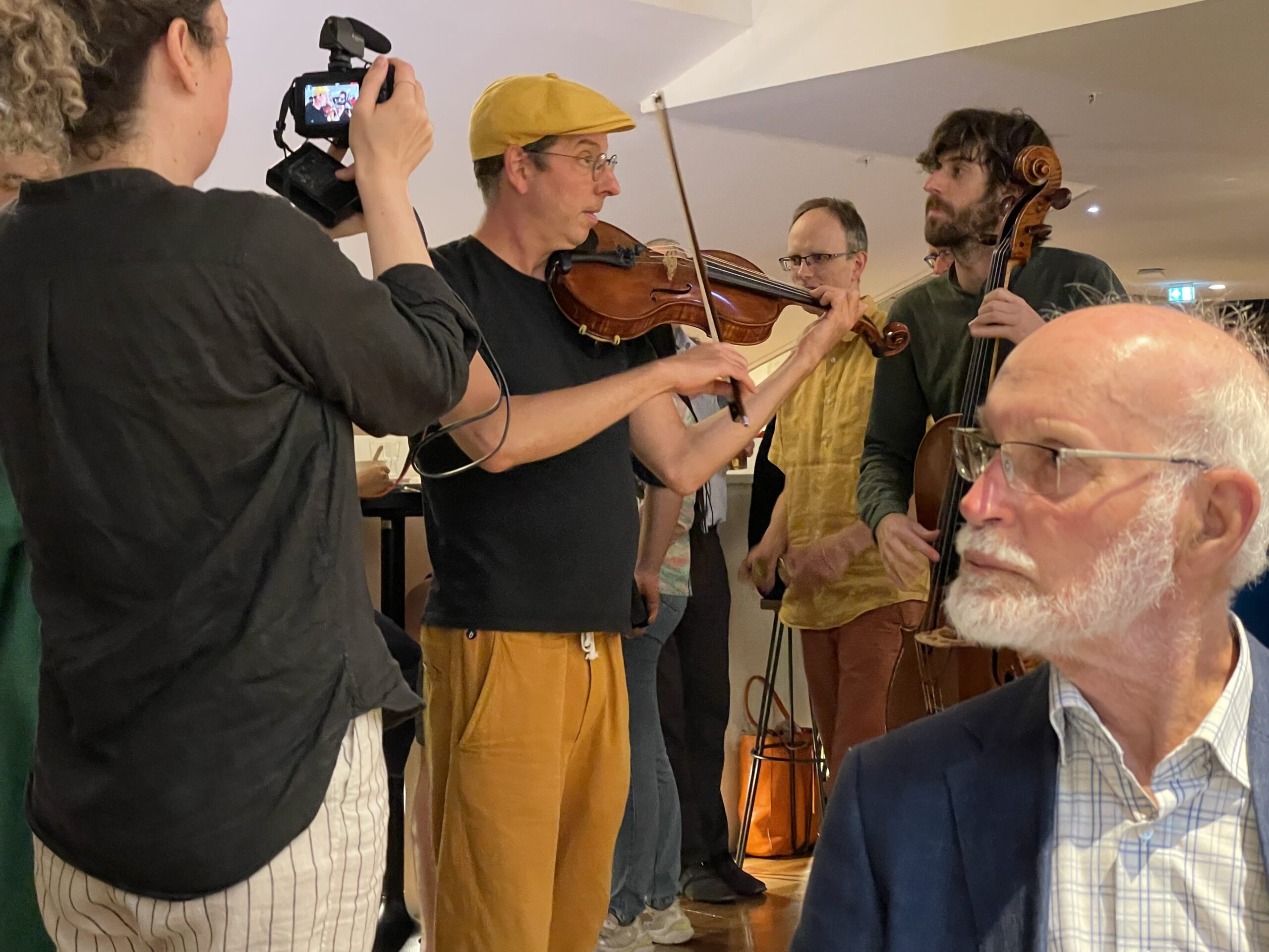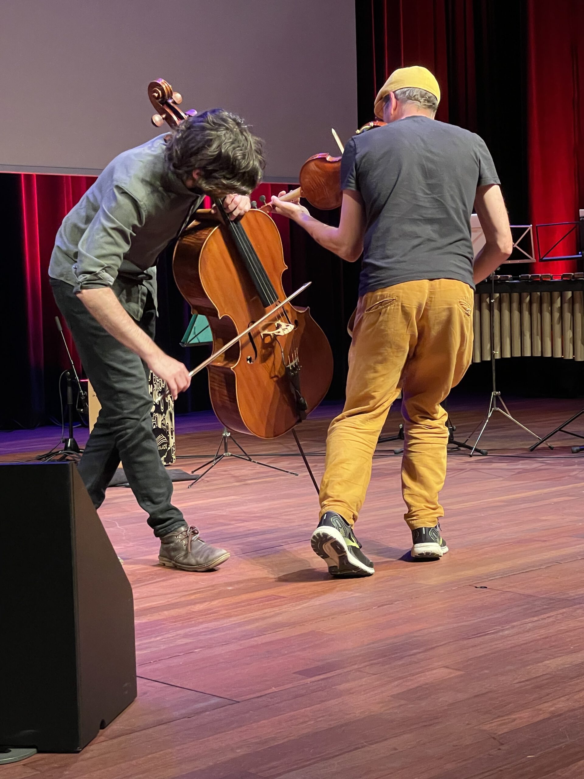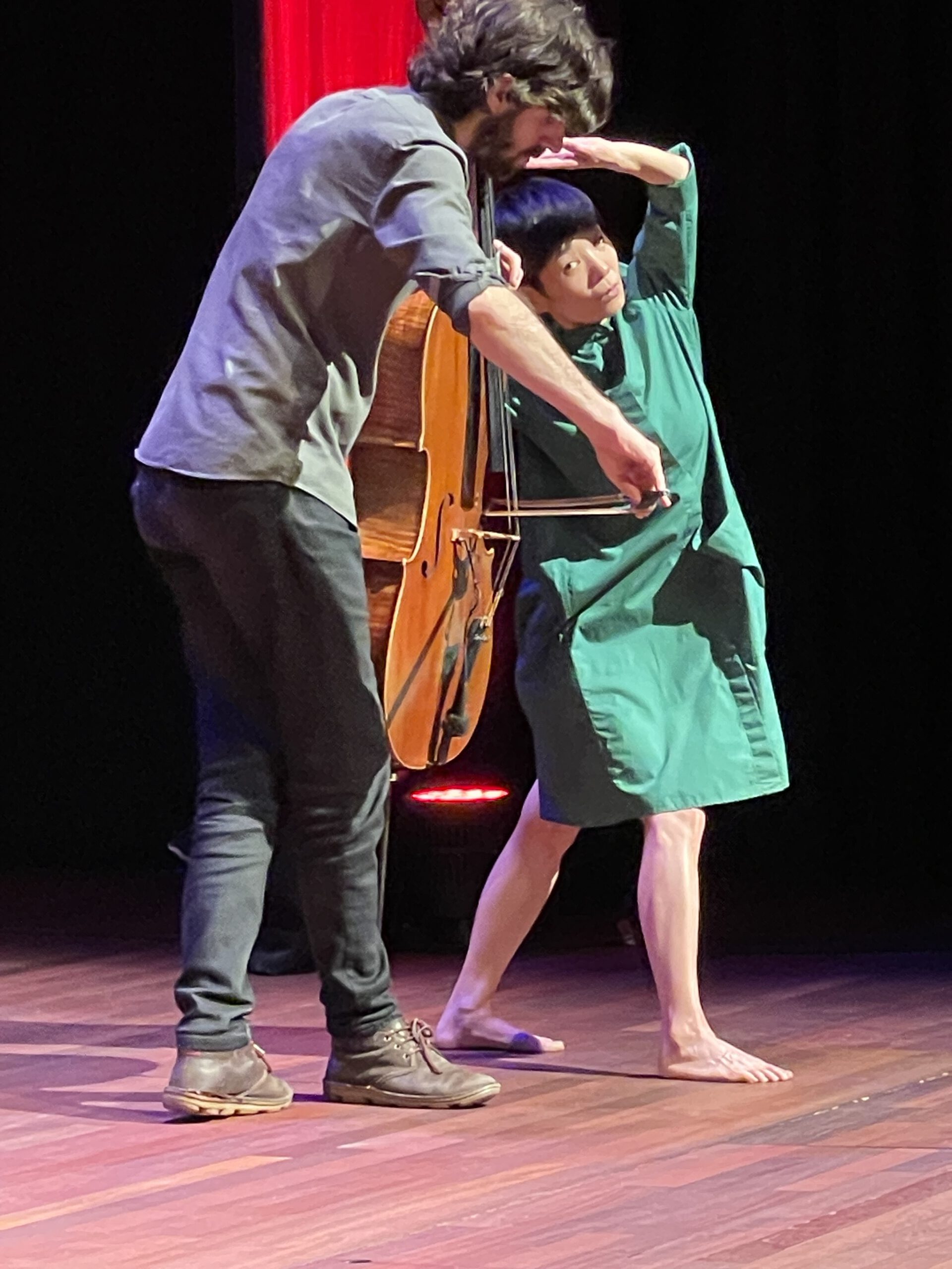 The idea of the unexpected was part of the performance of the artists. They are specialized in improvising music (piano, violin, cello, percussion) and dance. This underlined a playful taking of risks when the unexpected is invited in.